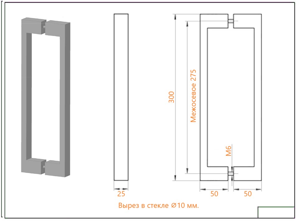 Ручка 09-64 для стекла 8-10 мм. 25*275*13 AISI 304