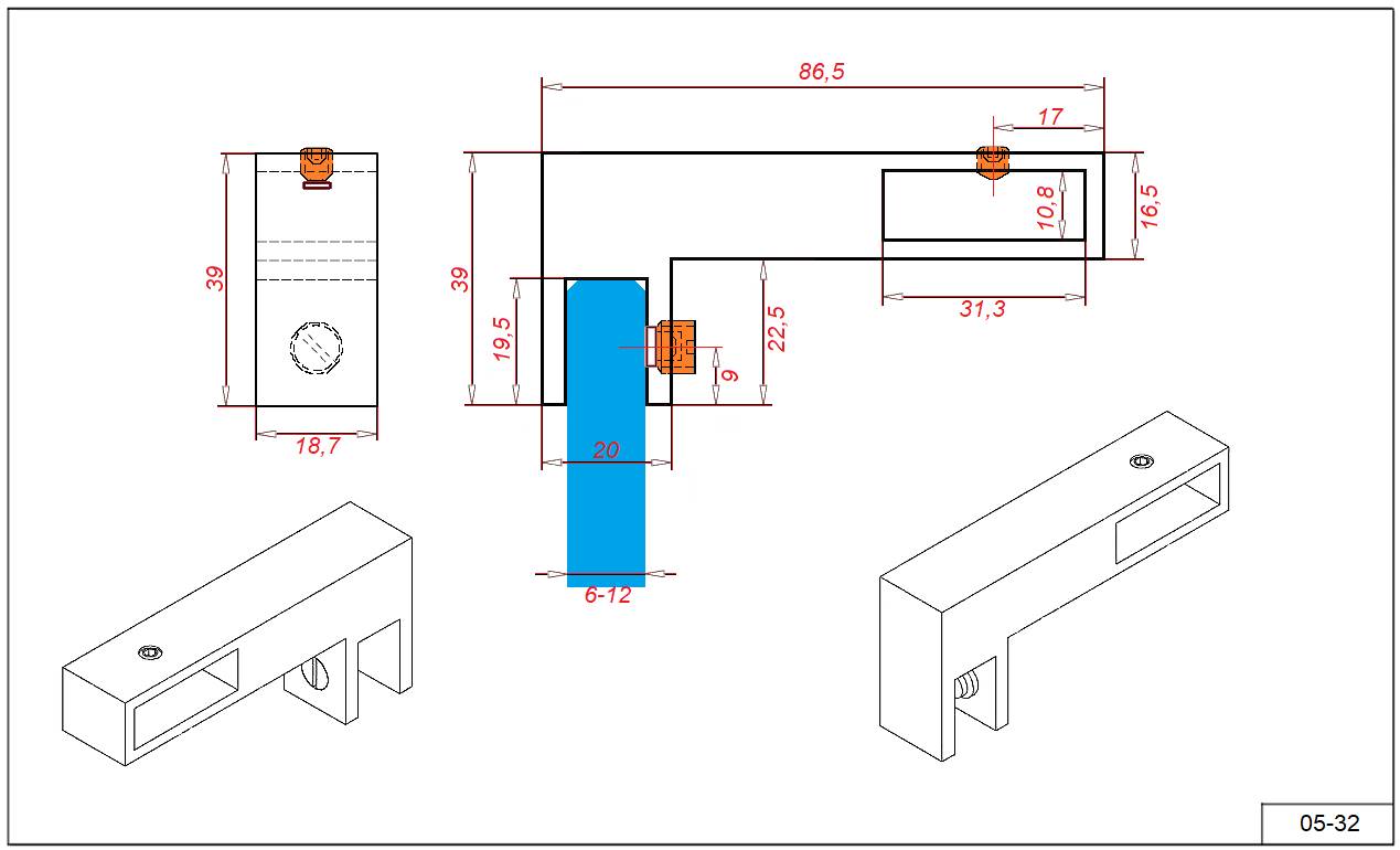 Держатель 05-32 цинковый для стекла 6-12 мм. под трубу 10х30 мм.