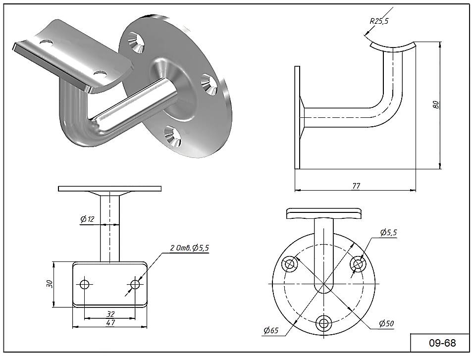 Держатель 09-68 пристенный под поручень Ø 50 мм. AISI 304