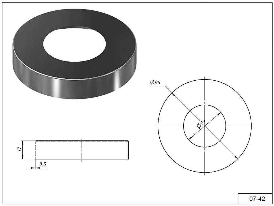 Крышка 07-42 Ø 86 мм. для тубы Ø 38 мм. AISI 304