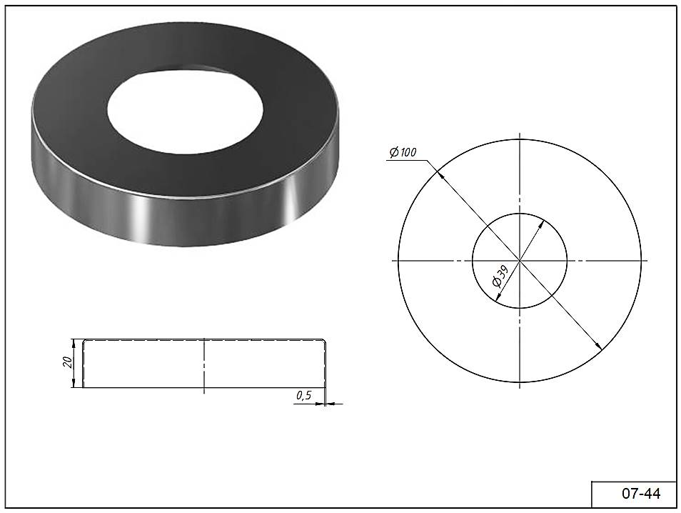 Крышка 07-44 Ø 100 мм. для тубы Ø 38 мм. AISI 304