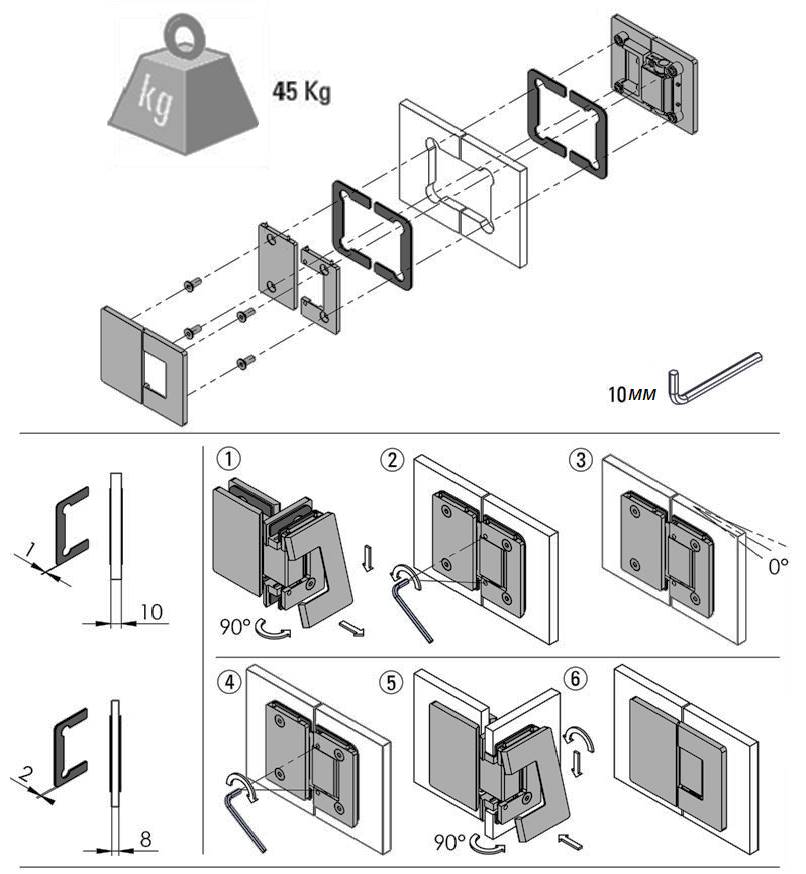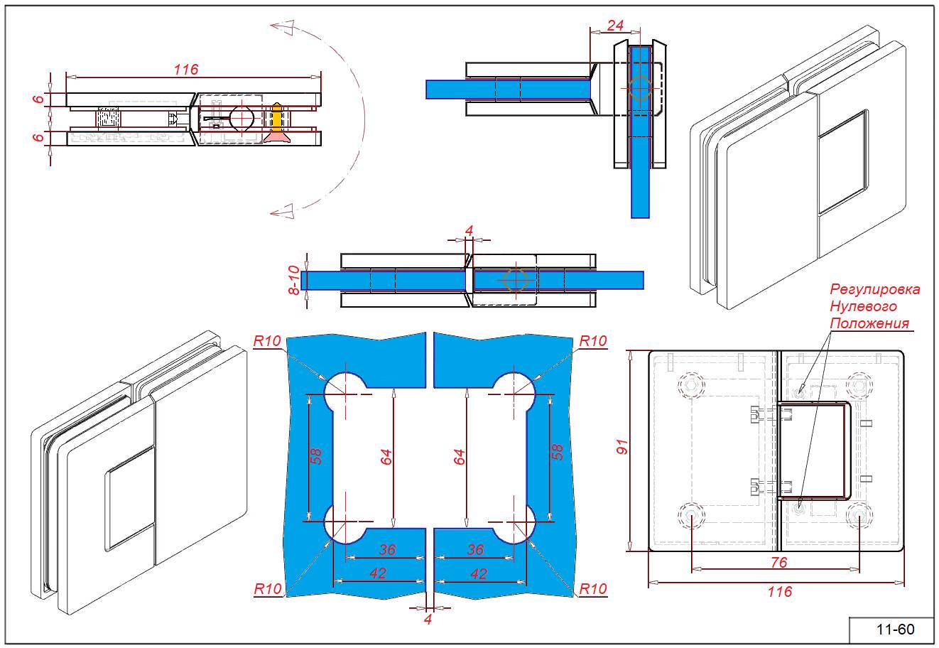 Петля 11-60 с РНП для стекла 8-10 мм. стекло-стекло