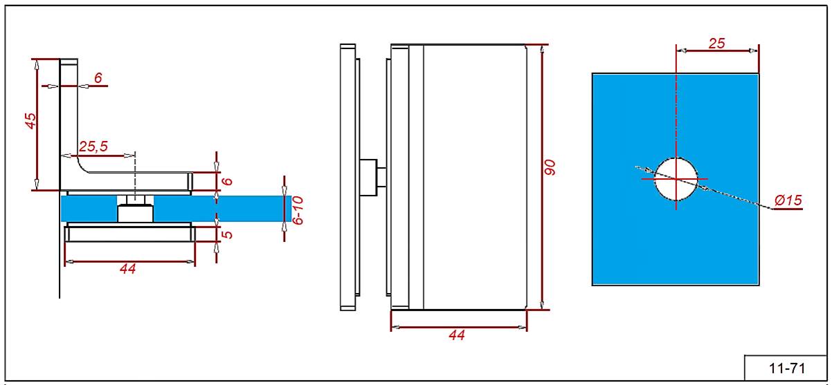 Коннектор 11-71 стена-стекло 6-10 мм. Угол крепления 90°гр.
