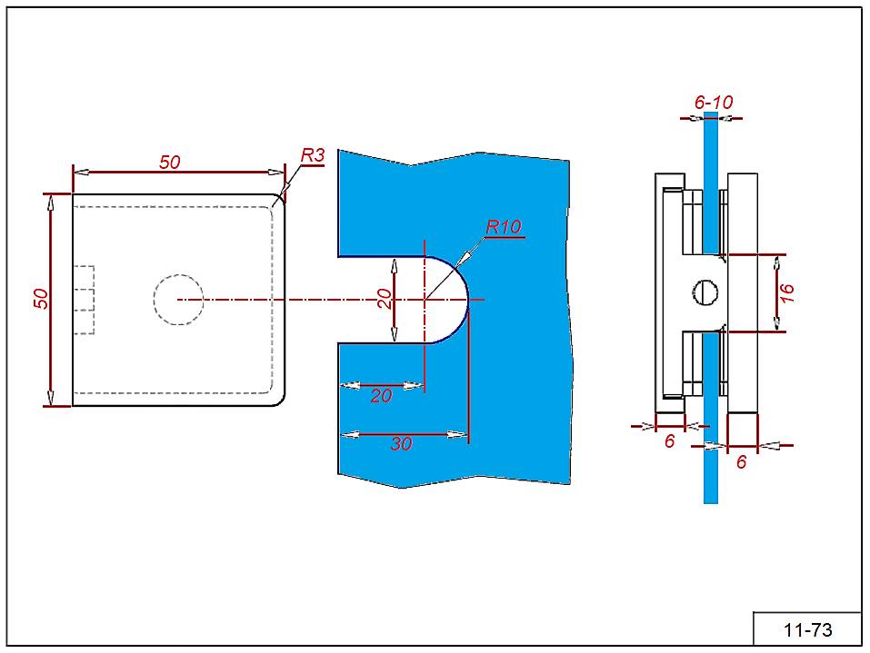 Коннектор 11-73 стена-стекло 6-10 мм. Угол крепления 90°гр.