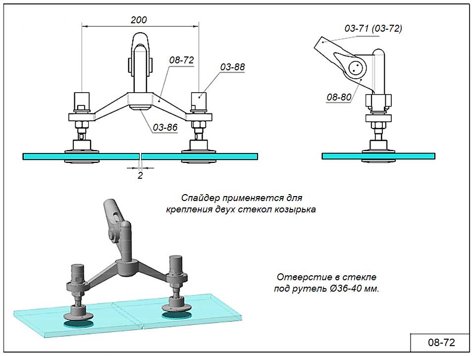 Спайдер 08-72 для рутеля 2х лопастной 180°гр. сталь AISI 304