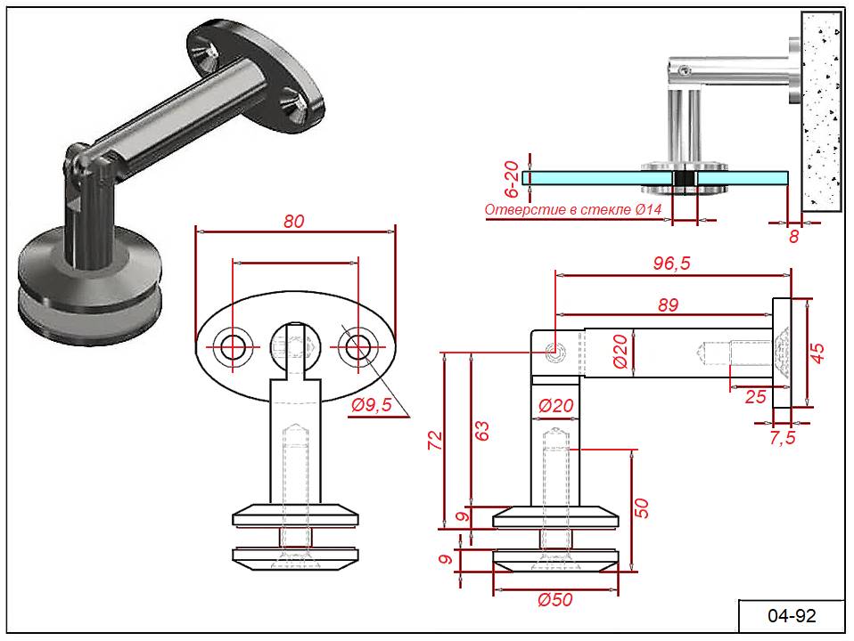 Крепеж 04-92 стекло-стена для стекла 6-20 мм. сталь AISI 304