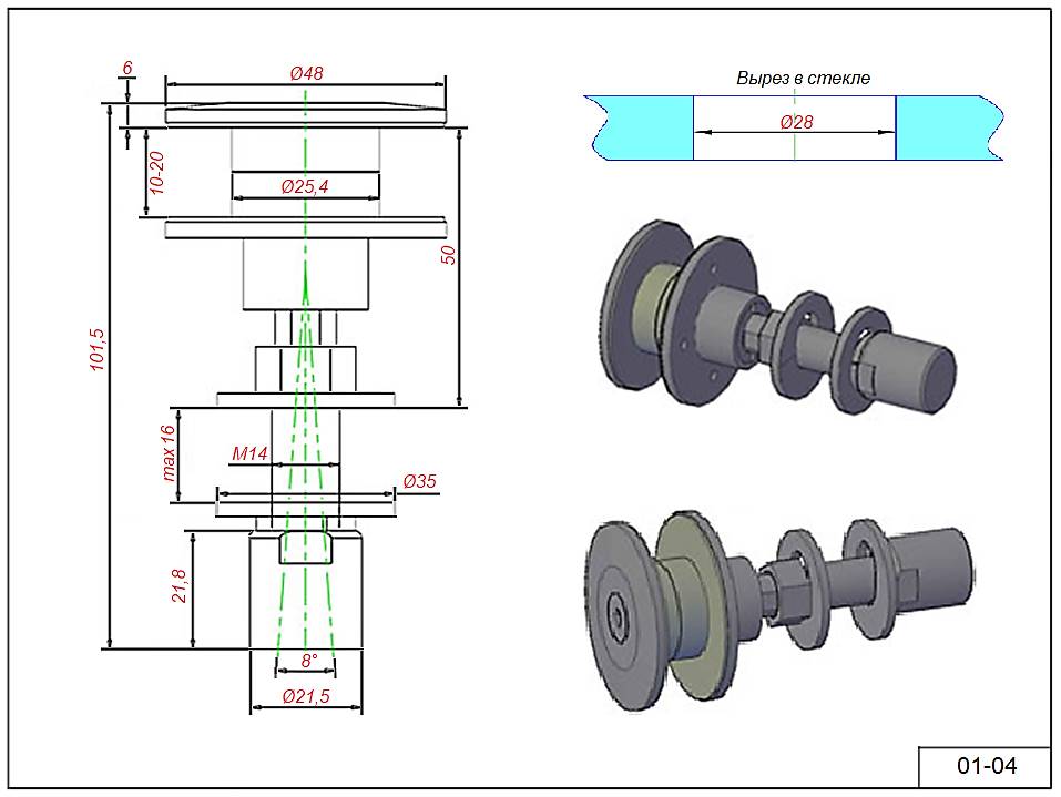 КОННЕКТОР ДЛЯ СТЕКЛА ЧЕРЕЗ ОТВЕРСТИЕ