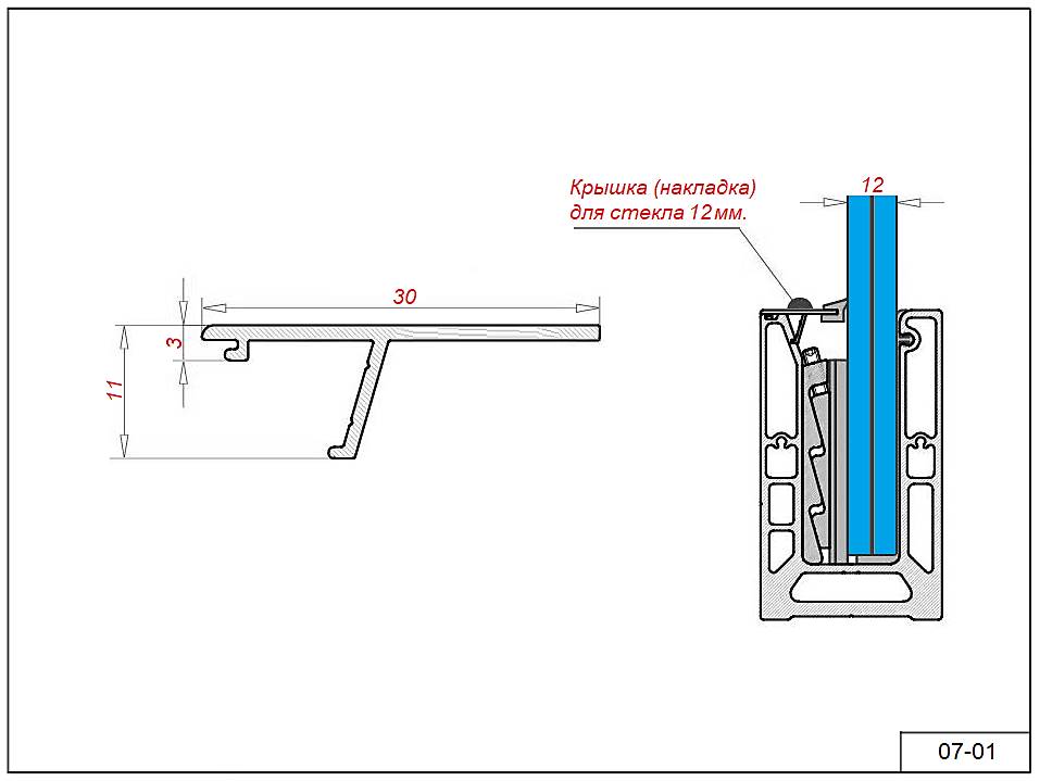 Накладка 07-01 крышка для профиля 08-67 стекло 12 мм.