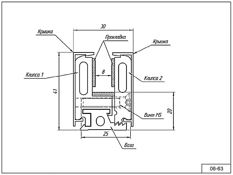 Профиль 06-63 без крышек зажимной (длинна 3000 мм.+ 10 клипс )