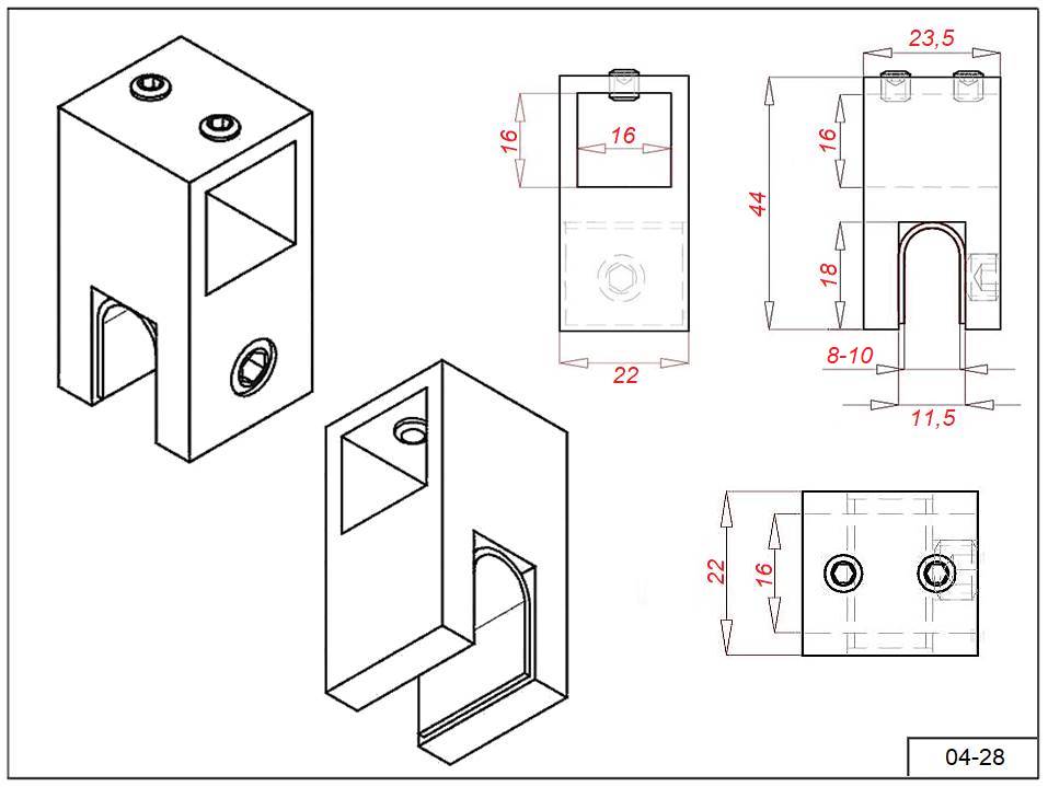 Держатель 04-28 под трубу 15х15 мм. на стекло 8-10 мм. AISI 304