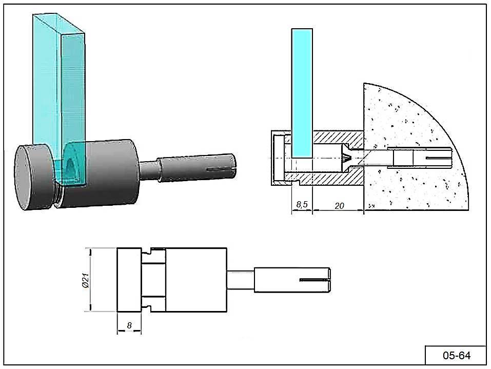 Держатель 05-64 с отрывом от стены 20 мм. Для стекла 5-8 мм.