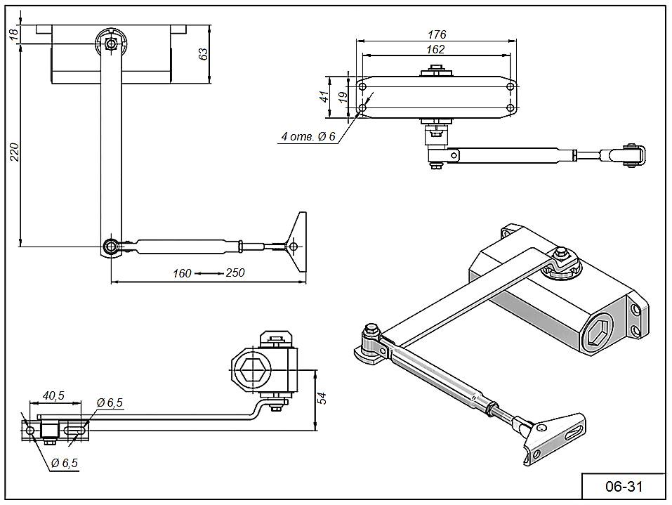 Более совершенные модели имеют плавную регулировку усилия. В некоторых доводчиках обычно обозначается через дефис, например EN 2-4. Такие доводчики конечно предпочтительнее, так как позволяют более точно подобрать усилие закрывания к конкретной двери, хотя обычно они несколько дороже.