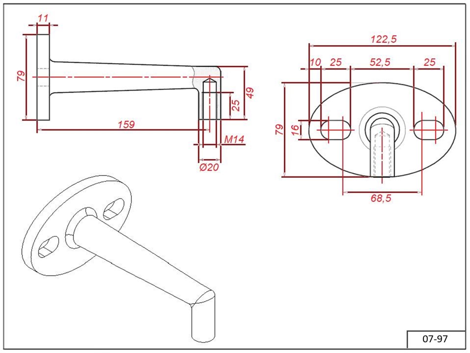 Крепление 07-97 к стене для рутеля угол 90°гр. сталь AISI 304