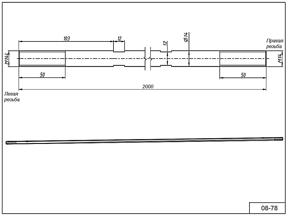 Тяга 08-78 L=2000 мм. Резьба М14 ПРАВАЯ-ЛЕВАЯ сталь AISI 304