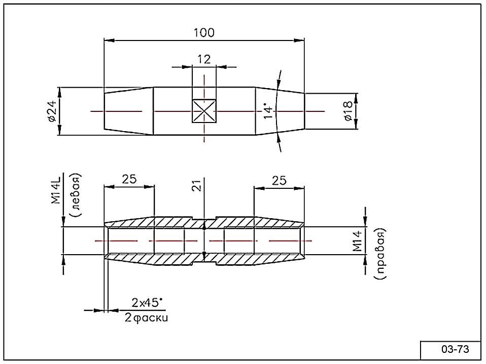 Муфта 03-73 L=100 мм. резьба М14 ПРАВАЯ-ЛЕВАЯ сталь AISI 316