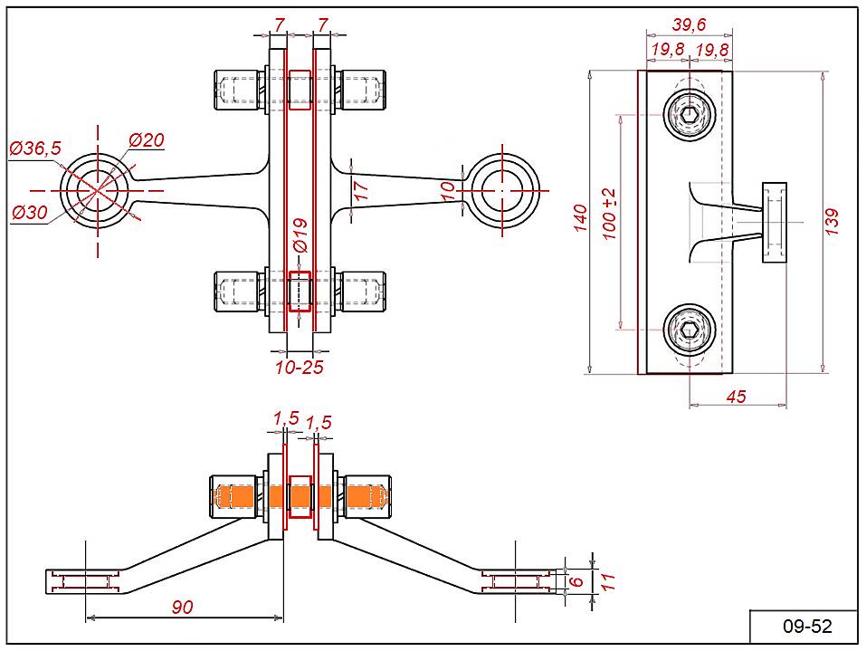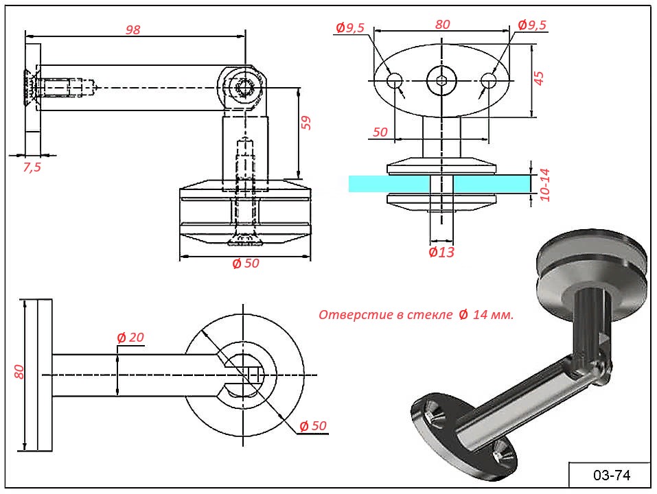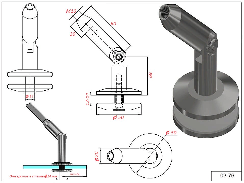 Крепеж 03-74 стекло-стена для стекла 10-14 мм. сталь AISI 316