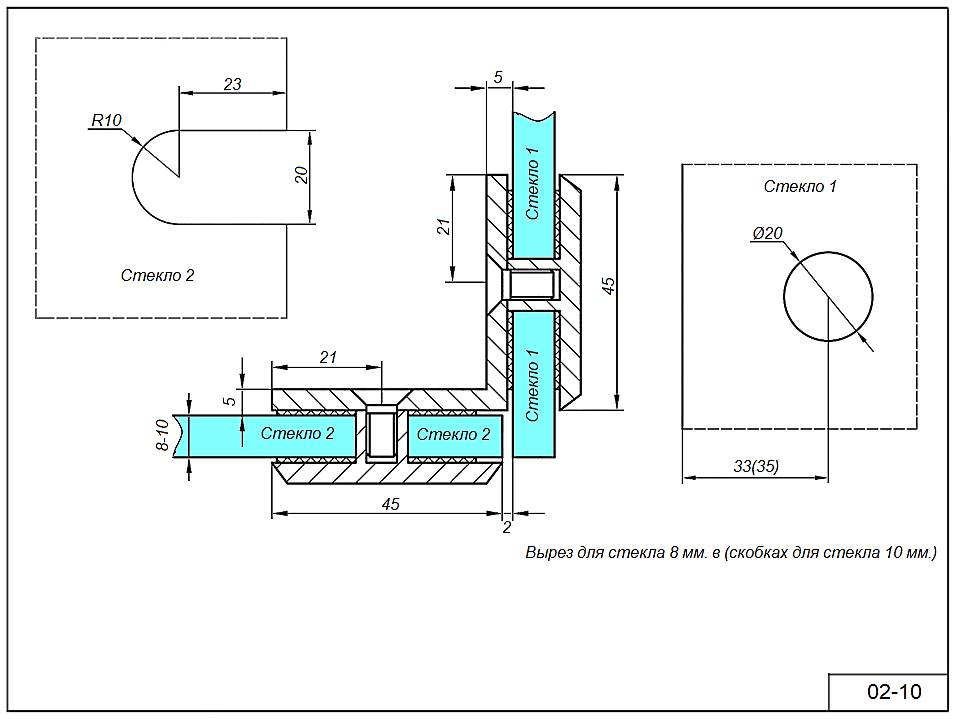 Коннектор 02-10 стекло-стекло 8-10 мм. угол крепления 90°гр.