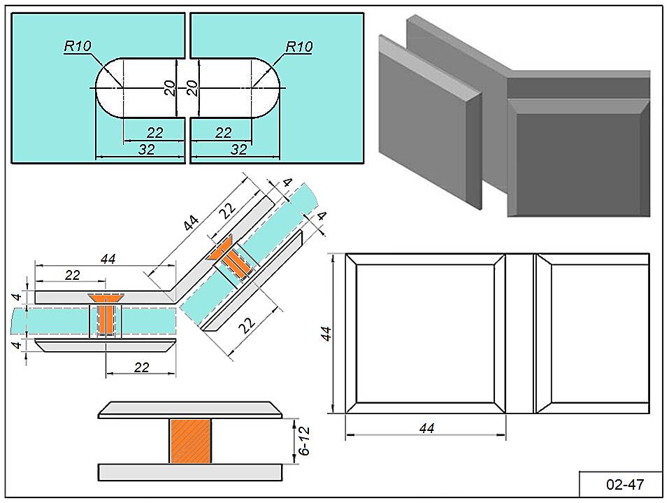 Коннектор 02-47 угол крепежа 135°гр. Для стекла 6-12 мм.