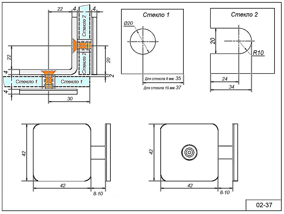 Коннектор 02-37 угол крепежа 90°гр. Для стекла 8-10 мм.