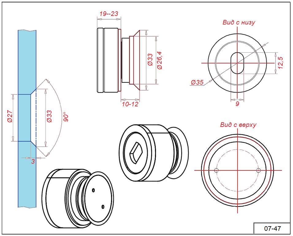 Крепеж 07-47 под зенковку стекло 10-12 мм. Регулируемое 19-23 мм.