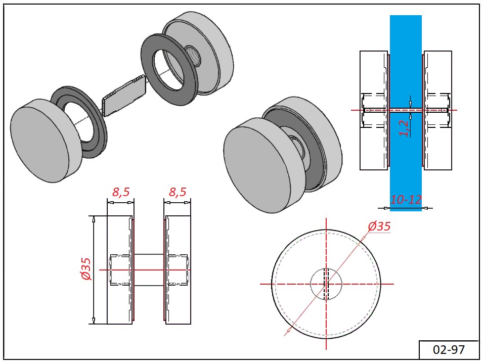 Крепеж 02-97 межстекольный без зенковки для стекла 10-12 мм.