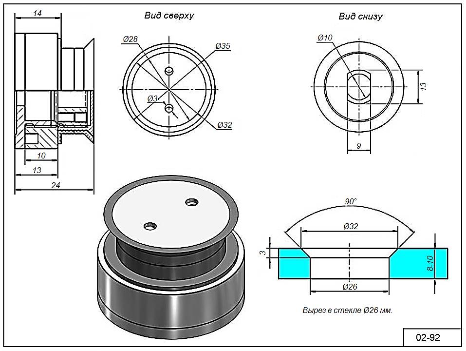 Крепеж 02-92 под зенковку стекло 8-10 мм. Регулируемое 10,5-12,5 мм.