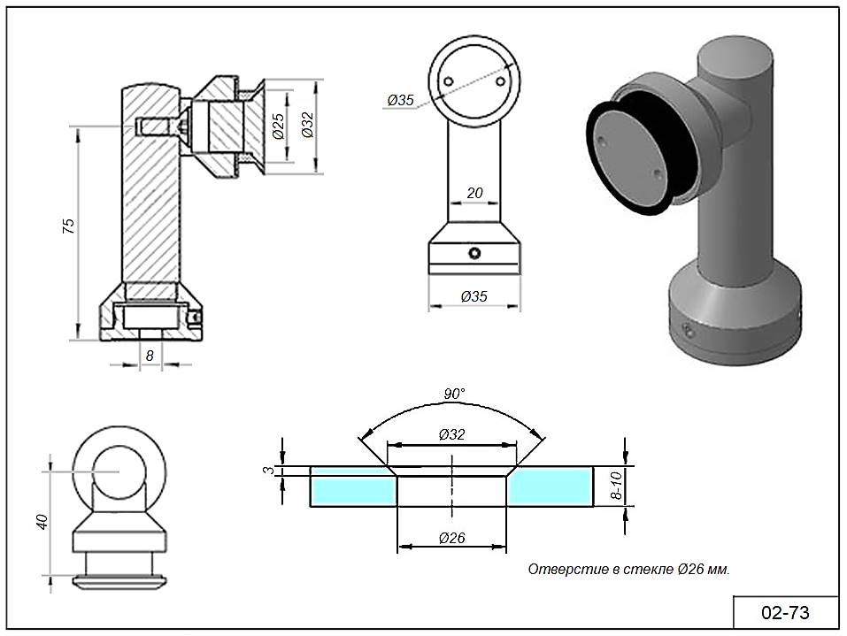 Стойка 02-73 под зенковку стекло 8-10 мм. стекло-пол/потолок 75 мм.