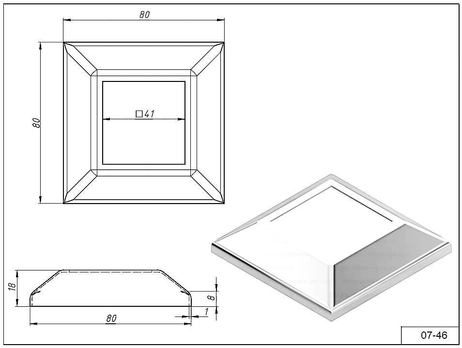 Крышка 07-46 квадрат 80х80 под квадратную трубу 40х40 AISI 304