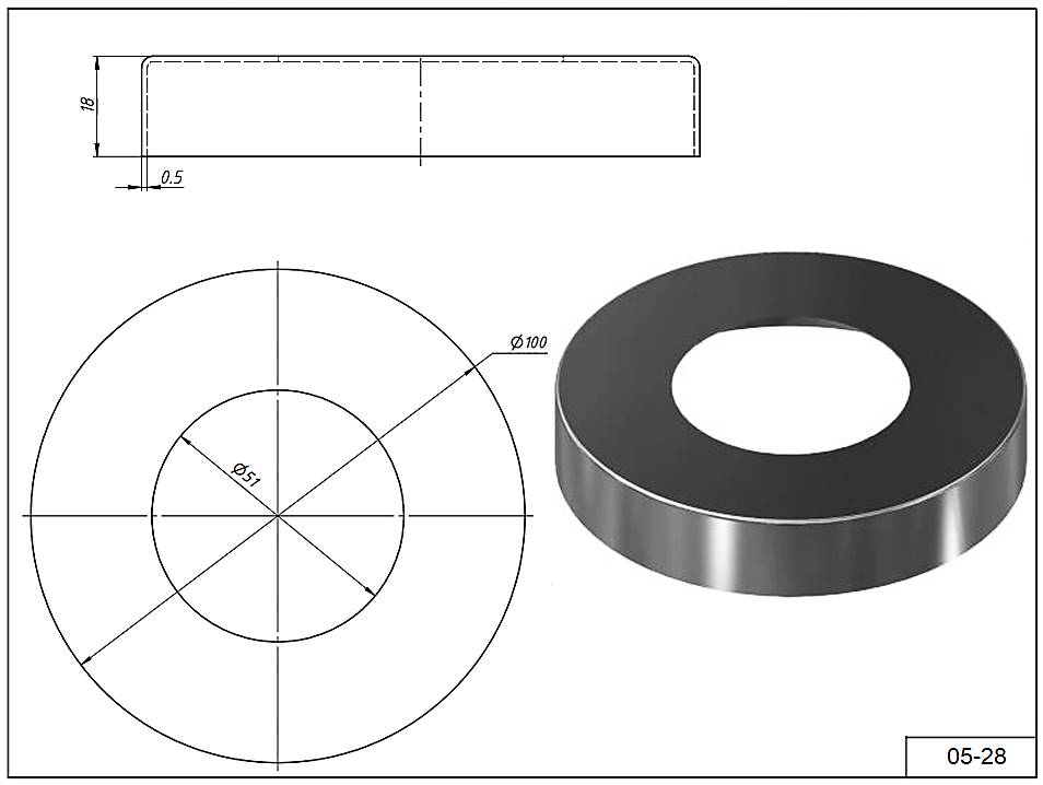 Крышка 05-28 Ø 100 мм. для тубы Ø 50 мм. AISI 304