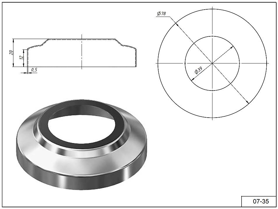 Крышка 07-35 Ø 78 мм. для тубы Ø 38 мм. AISI 304