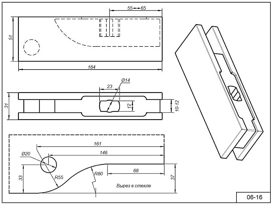 Петля нижняя 06-16 под доводчик и шарнир для стекла 10-12 мм.