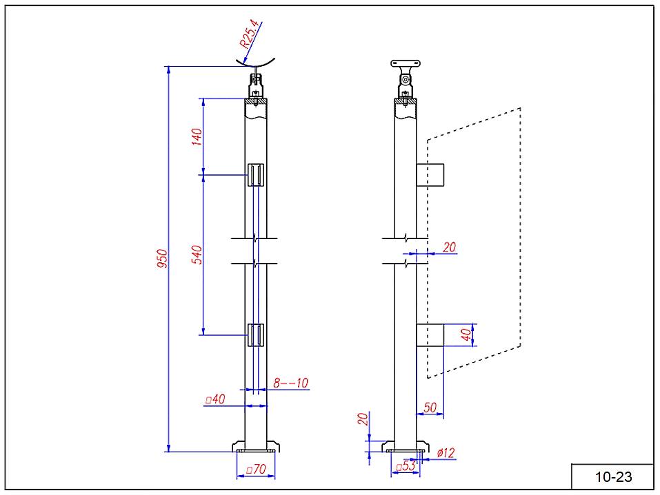 Стойка 10-23 квадрат 40*40 для стекла 8-10 мм. под поручень Ø 50 мм.