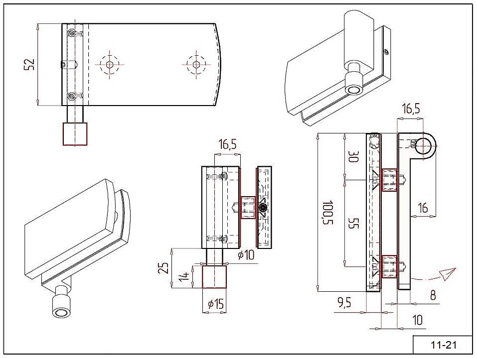 Петля 11-21 серия SND4 стекло-профиль для стекла 10 мм.