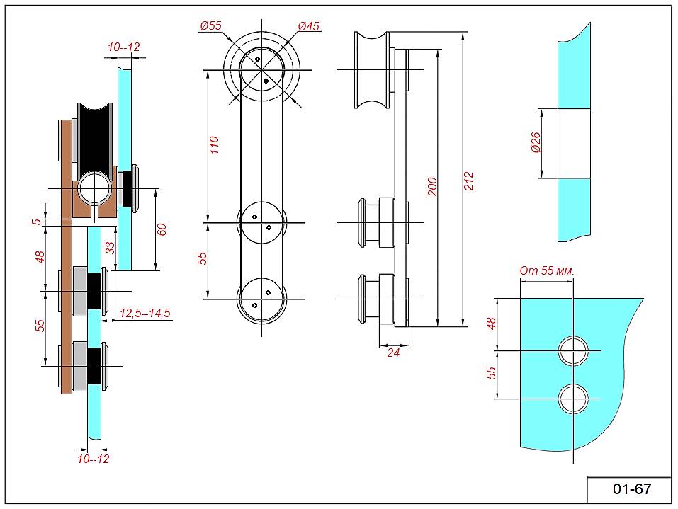 Каретка 01-67 без зенковки стекло 10-12 мм Сталь AISI 304