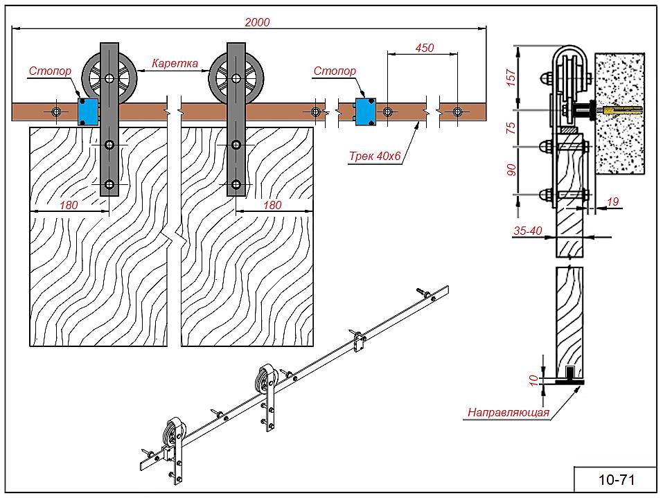 Комплект 10-71 для деревянной двери S=35-40 мм. с треком