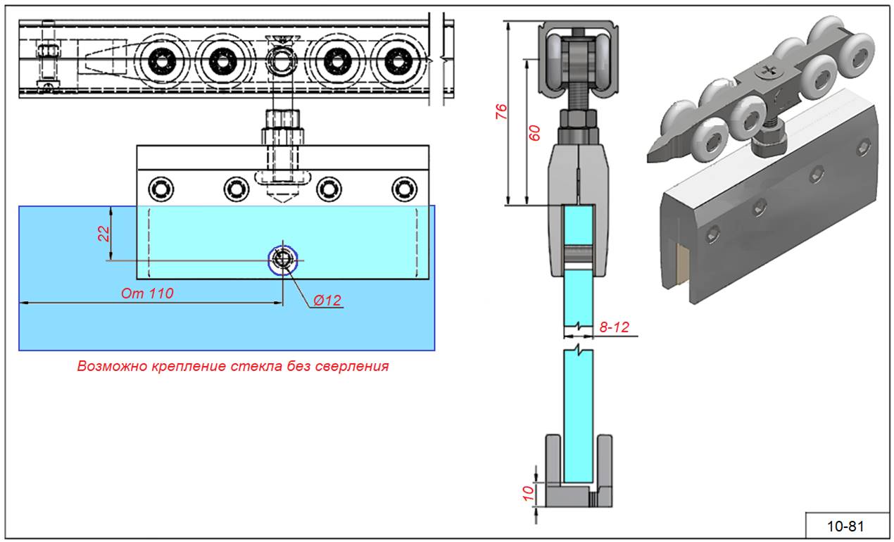 Комплект 10-81 системы "Гармония" для стекла 8-12 мм.