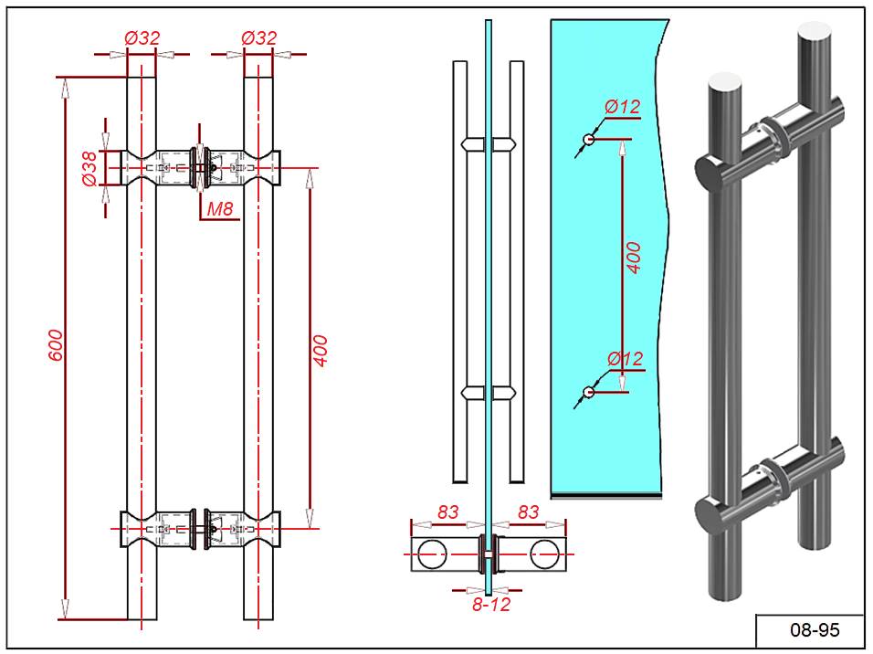 Ручка 08-95 для стекла 8-12 мм. 32*400*600 AISI 304