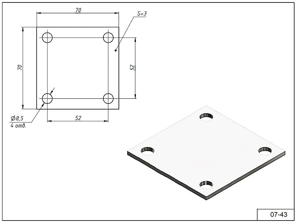 Фланец 07-43 основание для трубы 40х40 под сварку