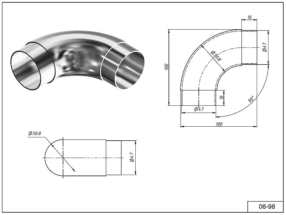 Отвод 06-98 для трубы Ø 50.8 мм. Угол 90°гр. AISI 304