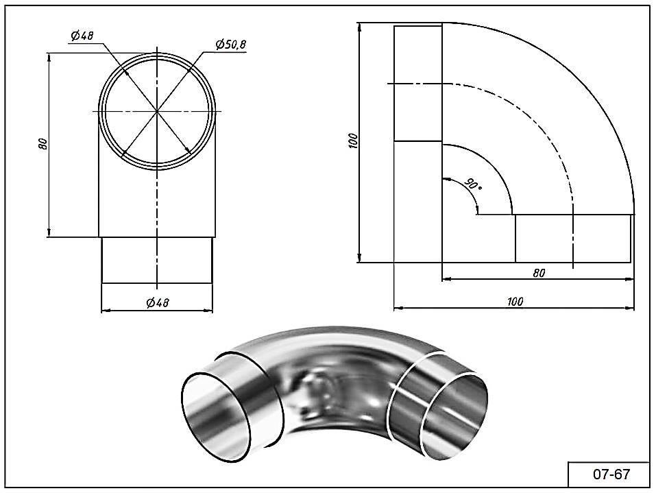 Отвод 07-67 для трубы Ø 50.8 мм. Угол 90°гр. AISI 201