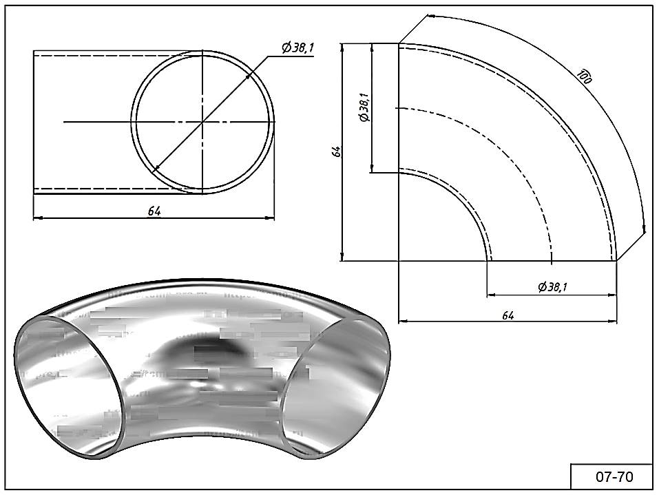 Отвод 07-70 для трубы Ø 38 мм. Угол 90°гр. AISI 304 под сварку