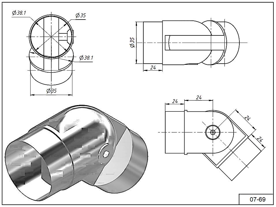 Фланец 07-69 внутренний шарнирный для трубы Ø 38.1 мм.