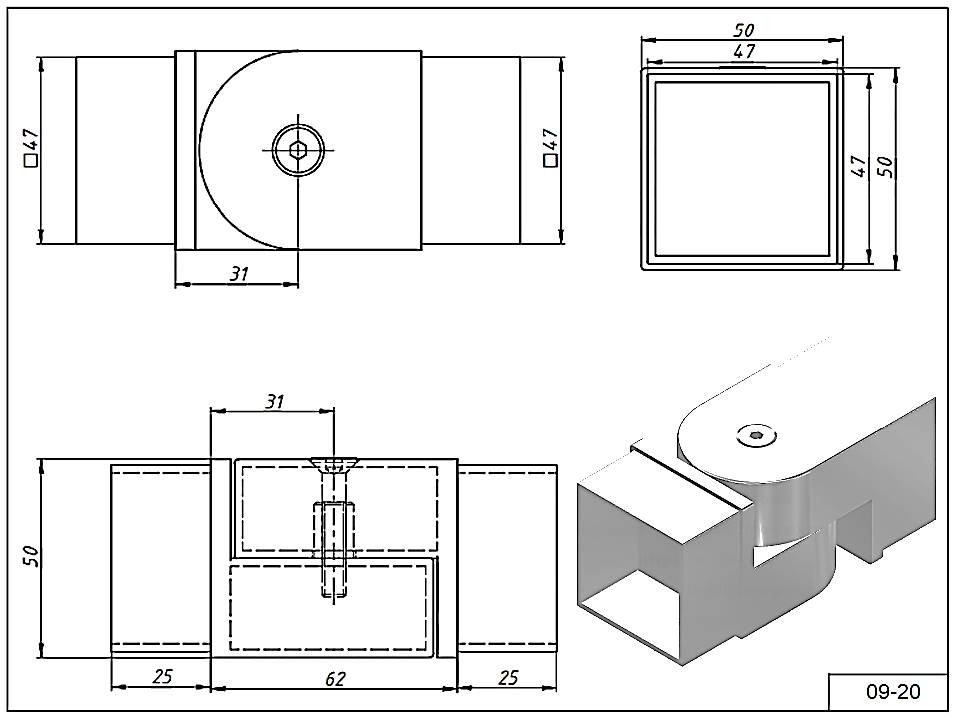 Соединитель 09-20 поворотный для профильной трубы 50х50 мм.