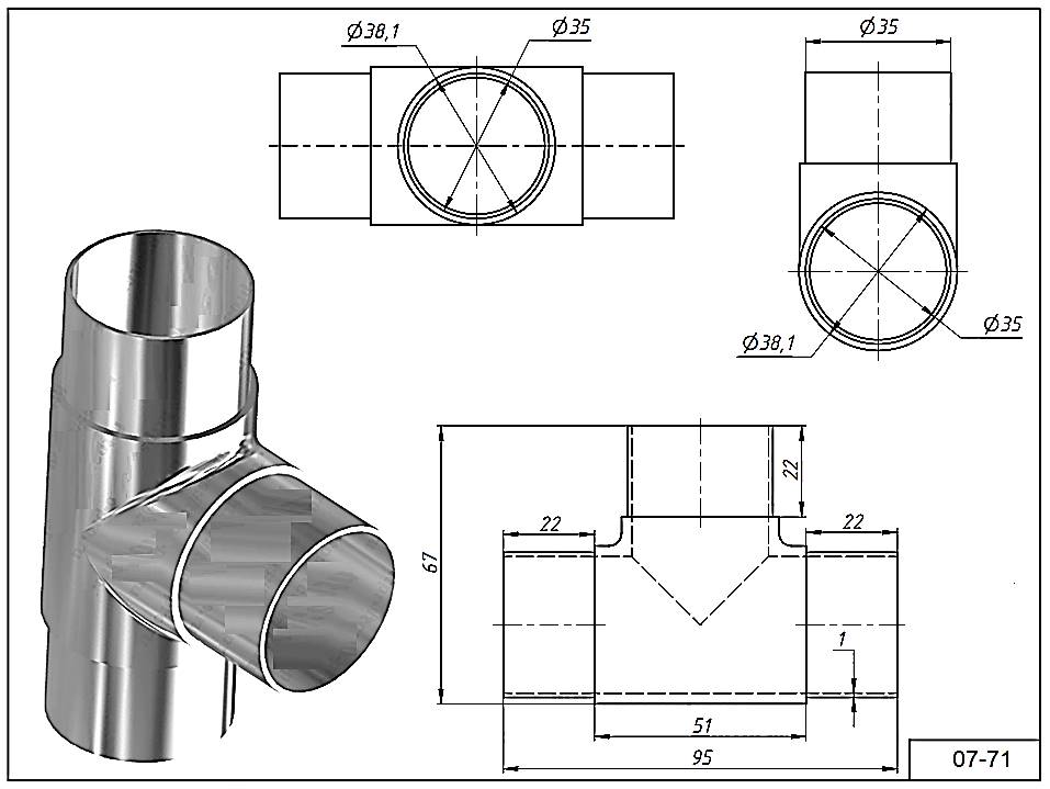 Тройник 07-71 для трубы Ø 38.1 мм. Угол 90°гр. AISI 304