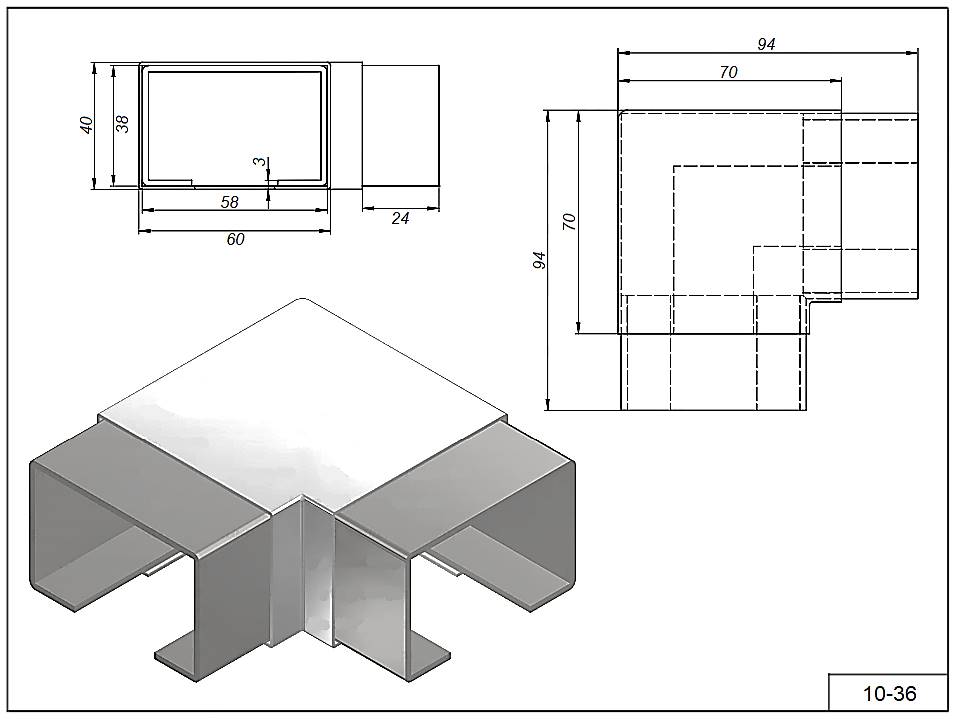 Уголок 10-36 с пазом 90°гр. под профильную трубу 60*40 мм.