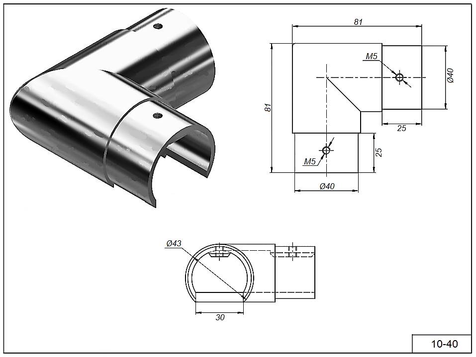 Уголок 10-40 с пазом 90°гр. для трубы Ø 42,4 мм. AISI 304