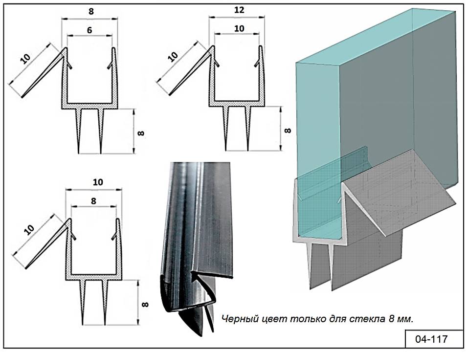 Профиль 04-117 уплотнительный стекло 6-8-10 мм. 2.2 м.
