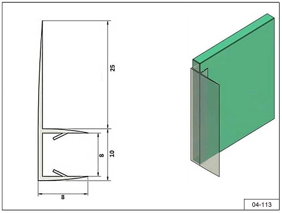 Профиль 04-113 уплотнительный стекло 8 мм. 2.2 м. ус 25 мм.